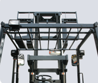 Увеличенное окно мачты, улучшенная укладка гидропроводки и уплощённые элементы защитной крыши оптимизируют обзор оператора вперёд, наверх и в направлении груза.