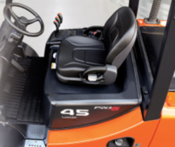 Комфортабельное динамическое сиденье делюкс с СКПО (Системой Контроля Присутствия Оператора), большим углом наклона спинки, увеличенным ходом регулировки сиденья и настройкой под вес оператора позволяет обеспечить оптимальный уровень комфорта.
